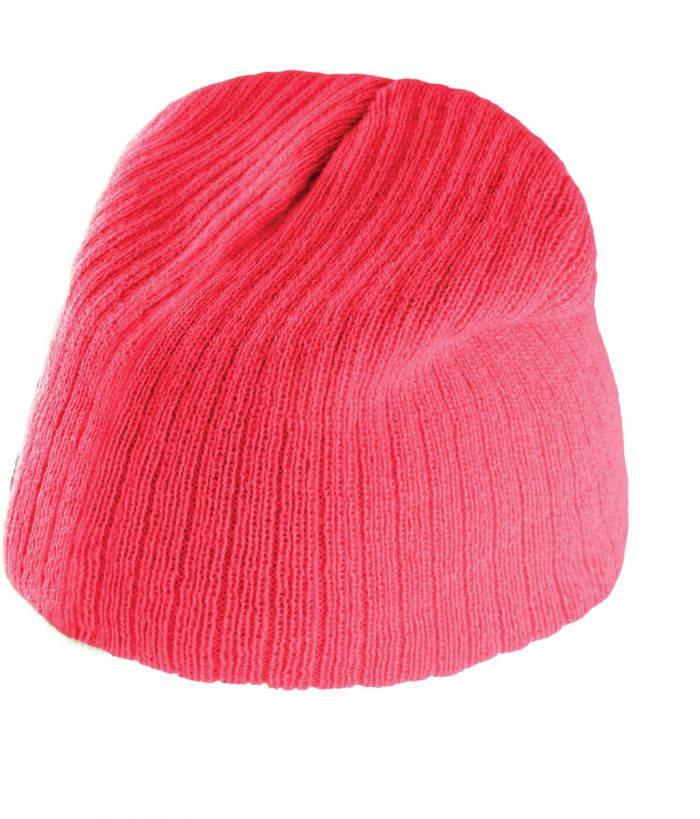 Bonnet tricot côtelé KP517 - Strawberry Pink composé de 100% acrylique. Bonnet en maille tricot côtelée. L'article Bonnet tricot côtelé KP517 - Strawberry Pink bénéficie de tarifs dégressifs par quantité et peut être personnalisé en option