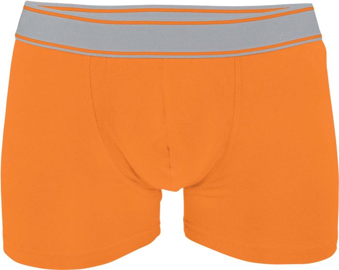 Boxer K800 - Orange 160 grs/m² composé de 95% coton / 5 % élasthanne. Ceinture élastiquée avec liserés contrastés. Le boxer K800 - Orange bénéficie de tarifs dégressifs par quantité et peut être personnalisé en option. Le boxer K800 - Orange à l'unité