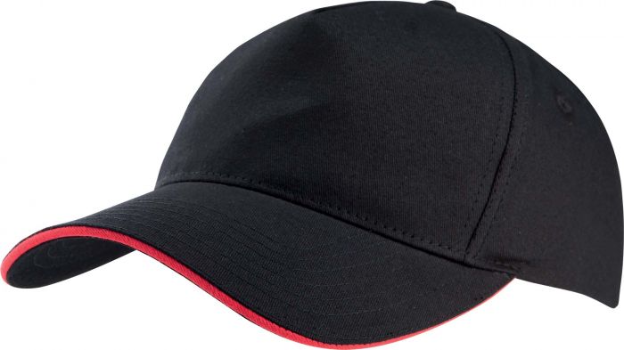 Casquette 5 panneaux sandwich contrasté KP124 - Black / Red