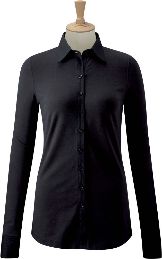 Chemise manches longues femme stretch RU993F - Black composé de 90% coton peigné / 10% élasthanne pour le corps de la chemise. Col, poignets et patte de boutonnage tissés en 97% coton et 3% élasthanne. Boutons ton sur ton. Conception limitant l'effet de transparence en blanc. Coupe ajustée. L'article Chemise manches longues femme stretch RU993F - Black bénéficie de tarifs dégressifs par quantité et peut être personnalisé en option. La chemise manches longues femme stretch RU993F - Black à l'unité