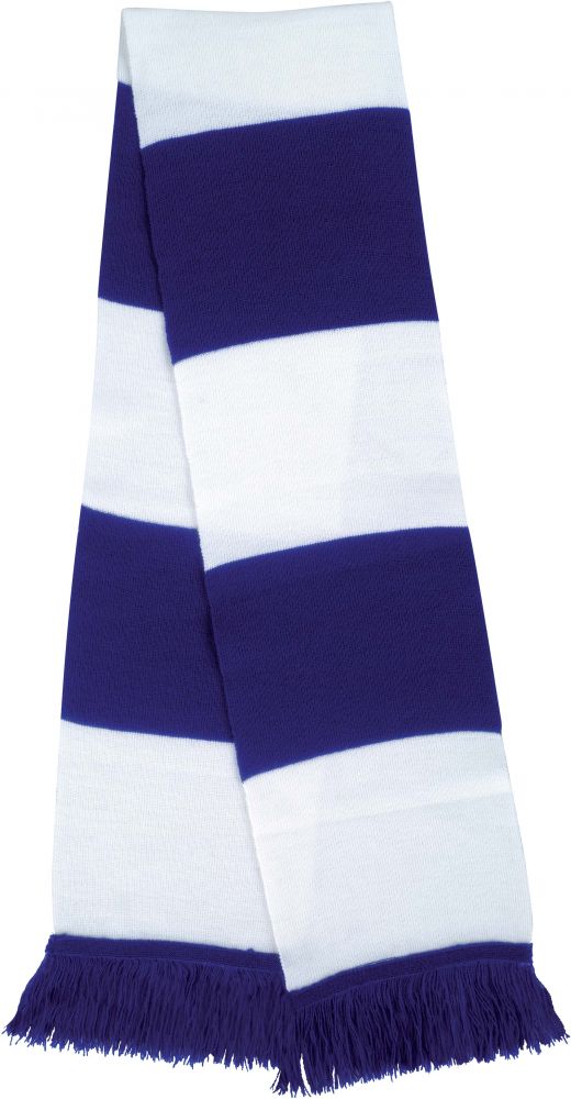 Écharpe bicolore "Team" R146X - Royal Blue / White 210 grs/m² composée en 100% acrylique tricot. Franges de 6 cm des 2 côtés de l'écharpe, Toucher doux agréable à porter. L'Écharpe bicolore "Team" R146X - Royal Blue / White est vendue à l'unité mis bénéficie de tarifs dégressifs par quantité et peut être personnalisée en option. L'Écharpe bicolore "Team" R146X - Royal Blue / White à l'unité