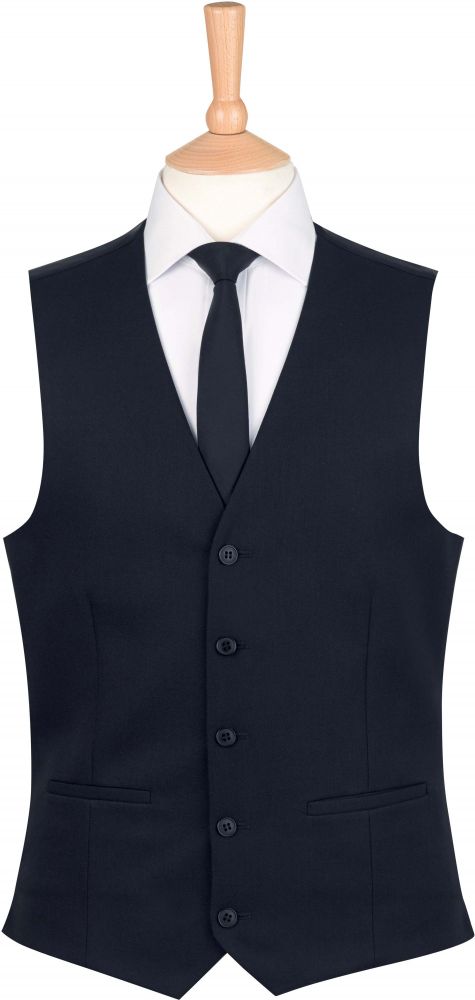 100% polyester superfin. Gilet 5 boutons et 2 poches, avec dos en satin réglable. Tissu certifié Oeko-Tex Standard 100 et performant : test pilling 4/5 et test de Martindale : 100,000 frottements sans casses. Lavable en machine à 40° ou nettoyage à sec.