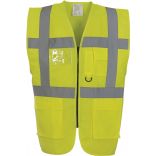 Gilet multifonction haute visibilité HVW801 - Hi Vis Orange / Black 120 grs/m² composé en 100% polyester. Bandes réfléchissantes de 5 cm de large autour du corps et une sur chaque épaule. Poche pour téléphone portable ou talkie-walkie à l'avant, côté gauche. Fermeture zippée sur toute la longueur. Deux poches inférieures avec rabats accessibles sur le haut et sur le côté, poches pour crayons et porte-clés, poche pour papiers d'identité côté droit, grande surface à l'arrière pour la personnalisation. Conforme à la norme : - EN ISO20471:2013 catégorie 1. Le gilet multifonction haute visibilité HVW801 - Hi Vis Orange / Black est vendu à l'unité mais bénéficie de tarifs dégressifs par quantité et peut être personnalisé en option. Le gilet multifonction haute visibilité HVW801 - Hi Vis Orange / Black à l'unité