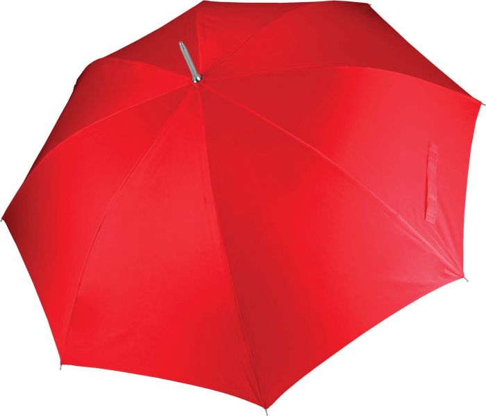 Parapluie de golf KI2007 - Red composé de Parapluie de golf 23" (58,5 cm), ouverture automatique, mât en métal noir ép. 10 mm, baleines noires en fibres de verre, embouts de baleine en métal, poignée de golf en polycarbonate finition mate, toile en polyester 210T. L'article Parapluie de golf KI2007 - Red bénéficie de tarifs dégressifs par quantité et peut être personnalisé en option