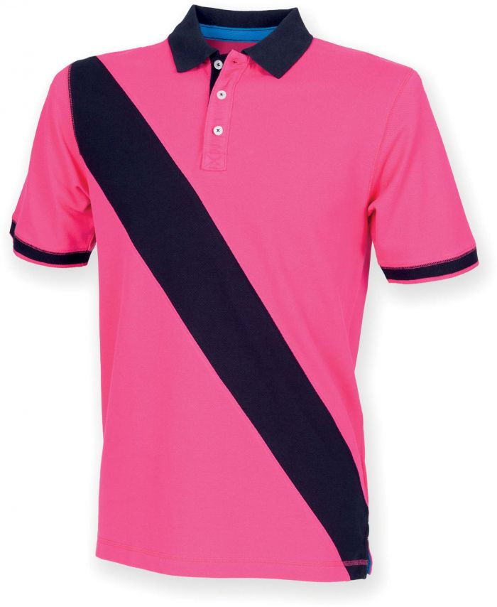 Polo homme diagonal stripe FR212- Bright Pink / Navy composé de 100% coton 200 grs/m². Maille piquée. Patte de boutonnage avec 3 boutons nacrés. Coupe ajustée. Bas de manche contrasté. Sans étiquette pour une personnalisation plus facile. L'article Polo homme diagonal stripe FR212- Bright Pink / Navy bénéficie de tarifs dégressifs par quantité et peut être personnalisé en option. Le polo homme diagonal stripe FR212- Bright Pink / Navy à l'unité