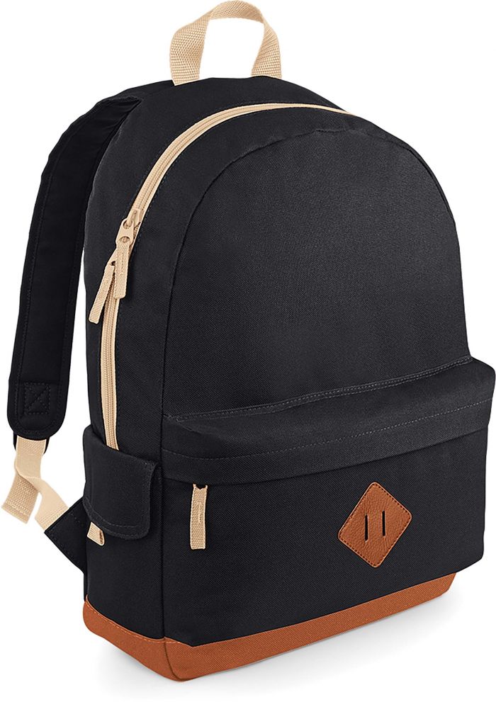 Sac à dos Héritage - Black composé de Polyester 600D, étiquette détachable tearaway, dos matelassé, bandoulières matelassées ajustables, poignée de transport, poche frontale zippée, poches internes, poches latérales. L'article Sac à dos Héritage - Black bénéficie de tarifs dégressifs par quantité et peut être personnalisé en option