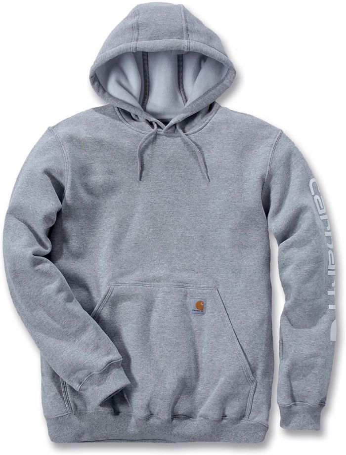Sweat-shirt de travail à capuche CARK288 - Heather Grey composé de 70% coton / 30% polyester 10.5 oz. Capuche trois parties avec cordon de serrage. Poche frontale avec étiquette Carhartt® cousue. Poignets et tour de taille bord-côte stretch avec élasthanne. Logo imprimé sur la manche gauche. Coupe large. Le sweat-shirt de travail à capuche CARK288 - Heather Grey est vendu à l'unité mais bénéficie de tarifs dégressifs par quantité et peut être personnalisé en option. Le sweat-shirt de travail à capuche CARK288 - Heather Grey à l'unité