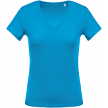 T-shirt femme col V manches courtes K390 - White 145 grs/m² composé de 100% coton jersey, Col en bord-côte 1x1 avec élasthanne. Coupe cintrée mode. Bande de propreté ton sur ton à l'encolure. Pas d'étiquette de marque au col, uniquement une puce de taille pour faciliter la personnalisation. Le t-shirt femme col V manches courtes K390 - White est vendu à l'unité mais bénéficie de tarifs dégressifs par quantité et peut être personnalisé en option. Le t-shirt femme col V manches courtes K390 - White à l'unité