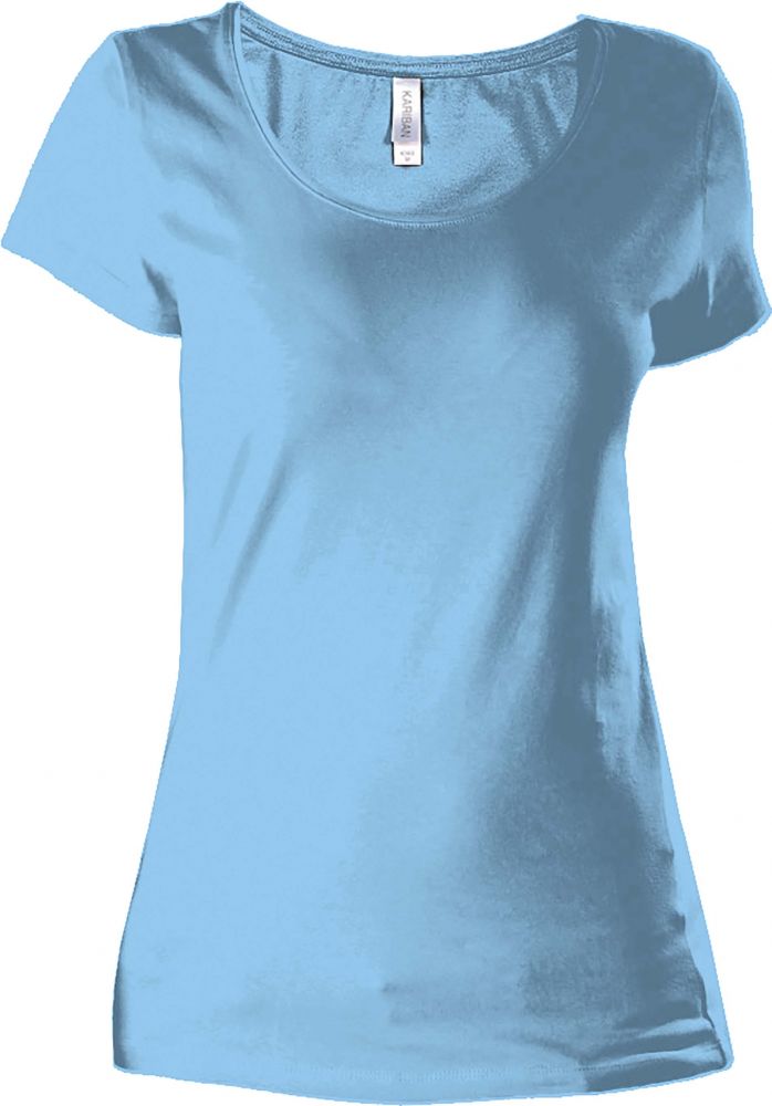 T-shirt femme manches courtes K360 - Sky Blue composé de 95% coton / 5% élasthanne. Coupe féminine et moderne. Tissu jersey au toucher doux et souple. Large encolure avec bande de propreté et petit biais de finition. Finition double aiguille sur bas de manches et bas de vêtement. L'article T-shirt femme manches courtes K360 - Sky Blue bénéficie de tarifs dégressifs par quantité et peut être personnalisé en option
