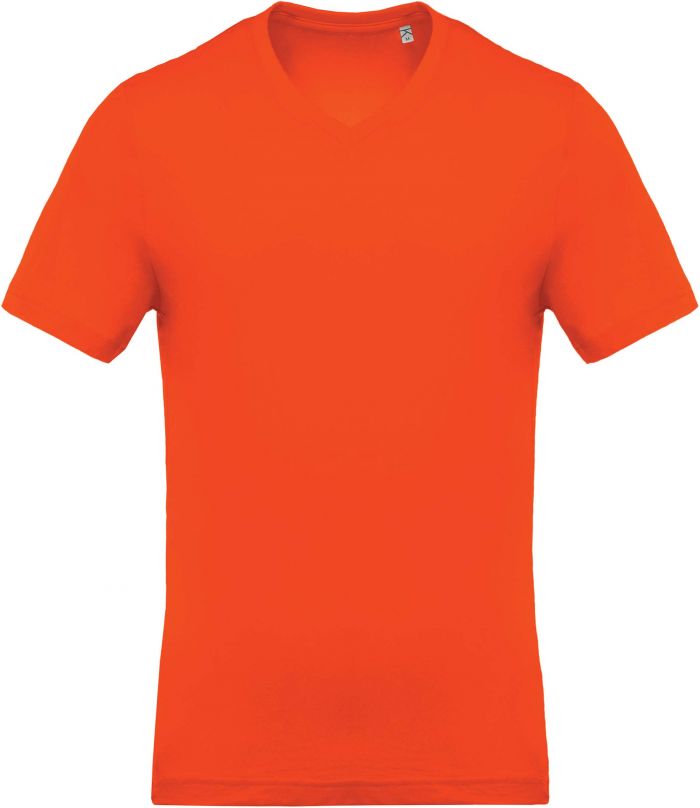 T-shirt homme col V manches courtes K370 - Orange 145 grs/m² composé de 100% coton jersey Col en bord-côte 1x1 avec élasthanne. Coupe ajustée mode. Bande de propreté ton sur ton à l'encolure. Pas d'étiquette de marque au col, uniquement une puce de taille pour faciliter la personnalisation. Le t-shirt homme col V manches courtes K370 - Orange bénéficie de tarifs dégressifs par quantité et peut être personnalisé en option. Le t-shirt homme col V manches courtes K370 - Orange à l'unité