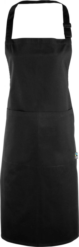 Tablier à bavette "Fairtrade" PR112 - Black composé de 100% coton Commerce Equitable. Cordon dans le même tissu que le tablier. Boucle réglable. Largeur: 60 cm. Longueur totale: 84 cm. Lavage domestique 40°C. L'article Tablier à bavette "Fairtrade" PR112 - Black bénéficie de tarifs dégressifs par quantité et peut être personnalisé en option
