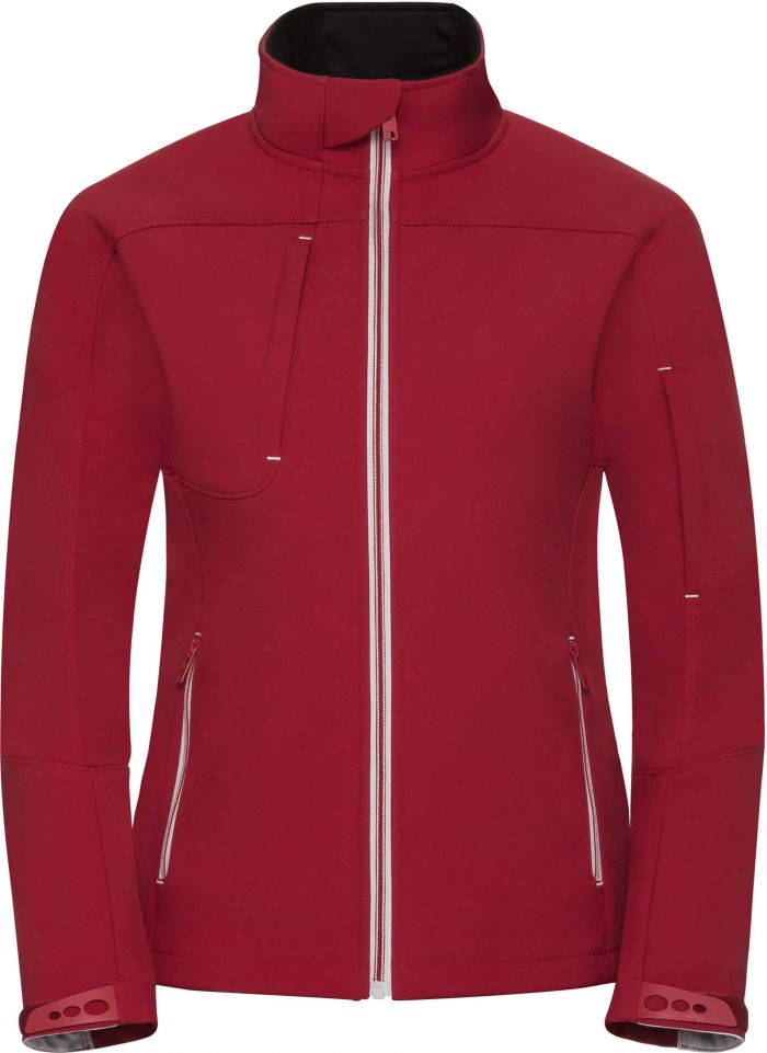 Veste femme softshell Bionic-Finish® RU410F - Classic Red composé de Softshell 3 couches 94% polyester / 6% élasthanne avec finition DWR Bionic-Finish® Eco. Innovation matière haute performance, sans fluor ni PFC, avec membrane hydrophobe 5000 mm, coupe-vent et respirante 5000 g/m²/24h. Zips et détails contrastés. Protège-menton. Col montant et rabat-tempête intérieur. Empiècements aérés hydroshell sous les bras. Doublure avant en jersey alvéolé avec une grande poche média en filet. Poches zippées avec rabat : 1 sur la poitrine et 1 sur la manche. Poignets ajustables avec languettes intégrées et bande velcro. Épaules sans couture. Zip intérieur pour accès personnalisation. L'article Veste femme softshell Bionic-Finish® RU410F - Classic Red bénéficie de tarifs dégressifs par quantité et peut être personnalisé en option